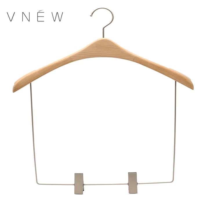 A beech wood clip hanger for premium garment display.