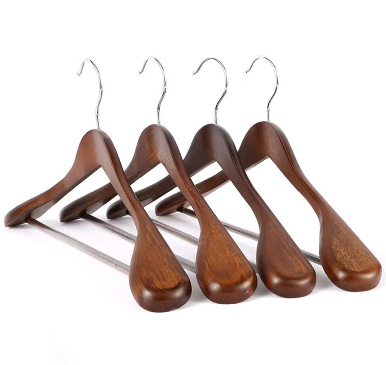 A lotus wood hanger for premium garment display.
